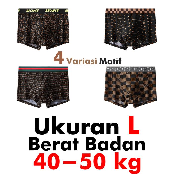 PAKET 4 PCS Celana Dalam Pria Boxer Motif corak Because Poliester Spandek CDP108 Katun Dewasa - L (40-50kg)