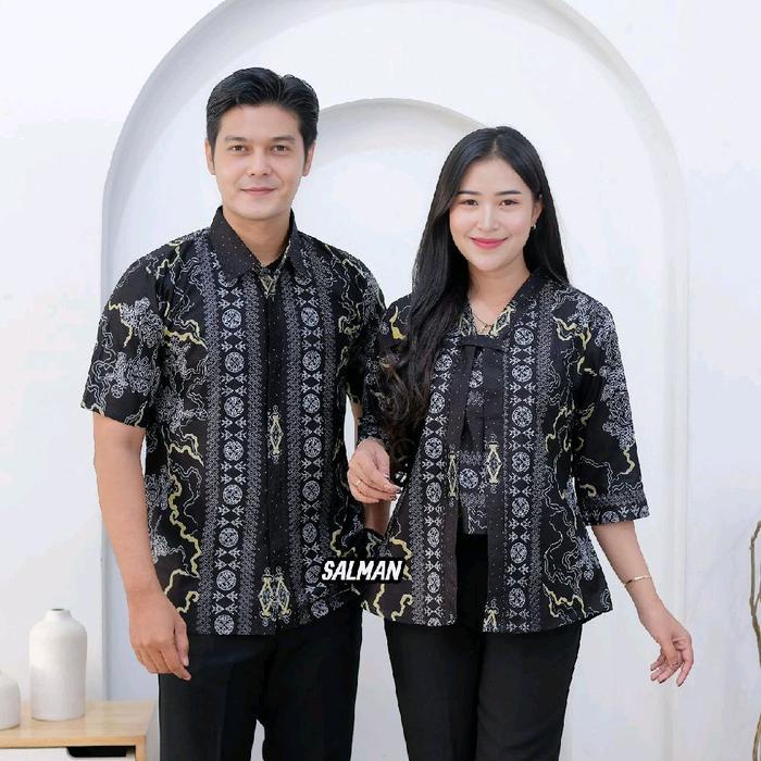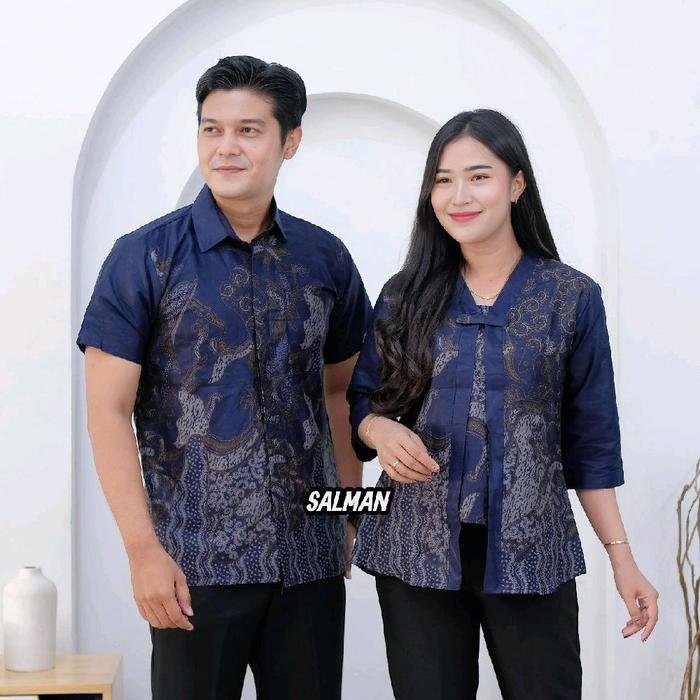ATASAN COUPLE BLOUSE BATIK KUTU BARU KTB ATASAN KEMEJA LENGAN PENDEK READY STOK M L XL XXL - HEM SONGKET BIRU, M