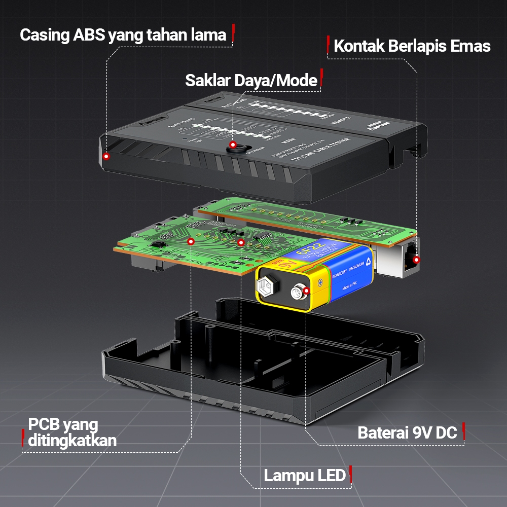 AMPCOM Alat Penguji Kabel Jaringan Terbaru Alat Uji Kabel LAN Mendukung Kabel untuk Kabel RJ45/RJ11/RJ12/CAT5/CAT6/UTP Ethernet Bahan Tahan Api
