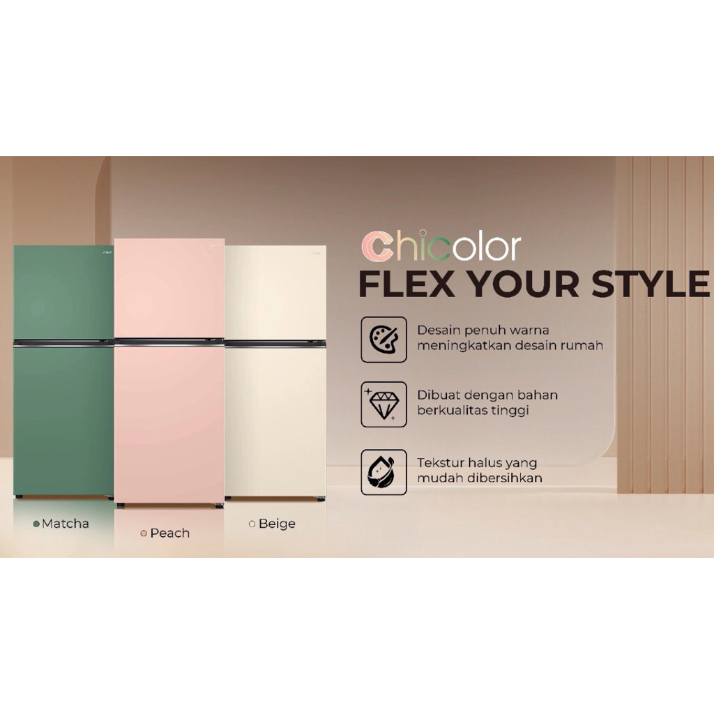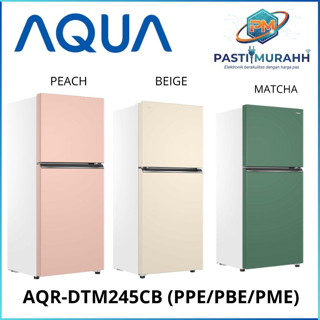 AQUA KULKAS DUA PINTU NEW AQR-DTM245CBP(PE) CHIC COLOUR PEACH/MATCHA/BEIGE 185L HEMAT LISTRIK GARANSI 7 TAHUN