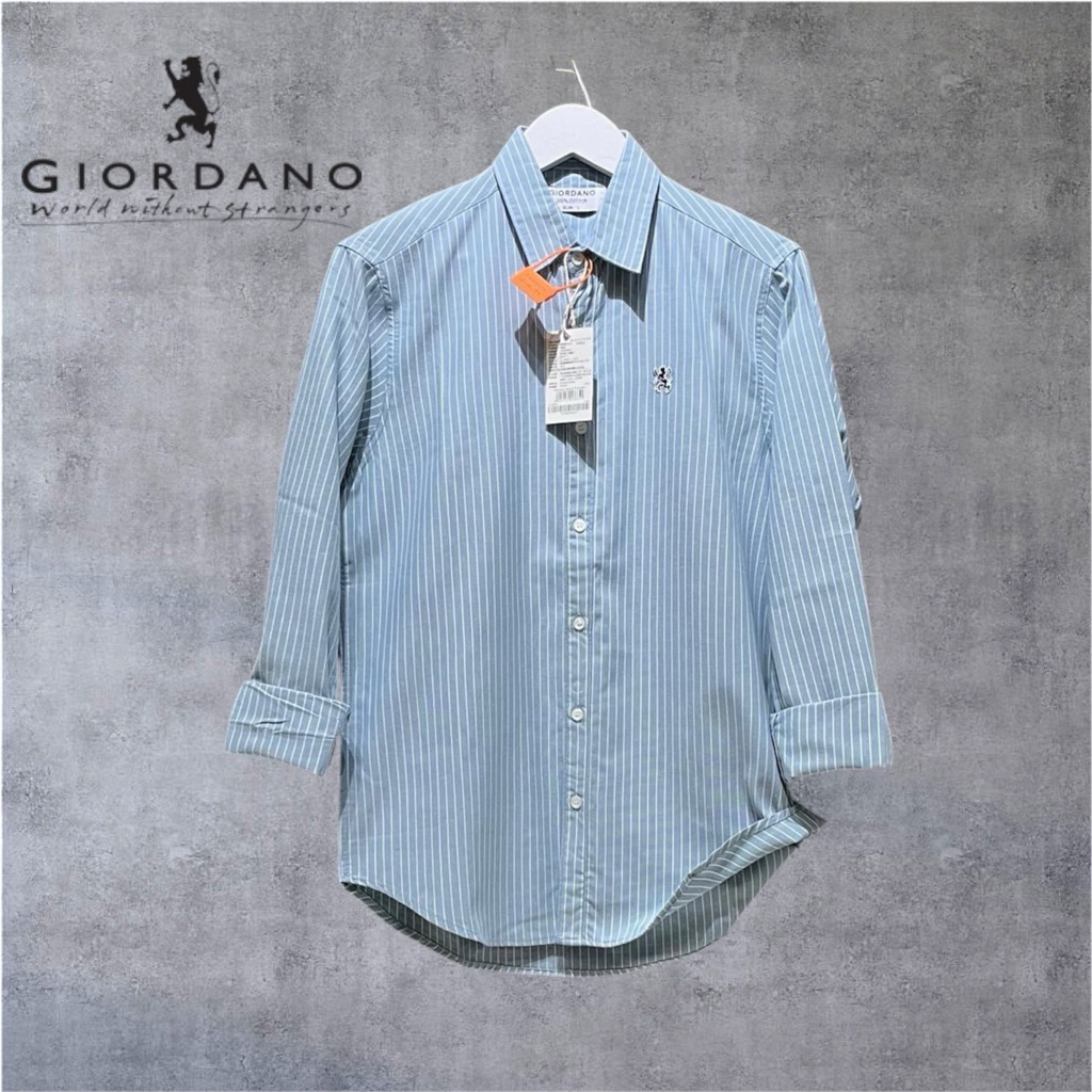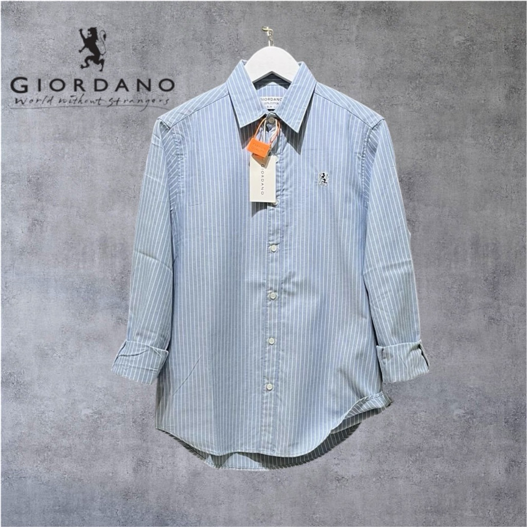 Giordano Kemeja Stripe panjang pria Slim Fit Premium Terbaru