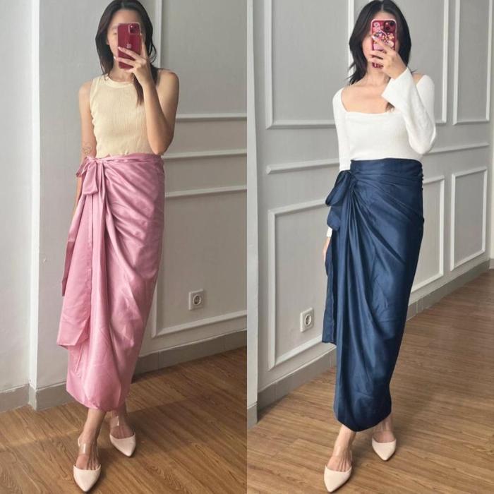 FREE RING ROK LILIT SATIN WARNA MAHOGANI ROK LILIT POLOS PREMIUM - DUSTY PINK
