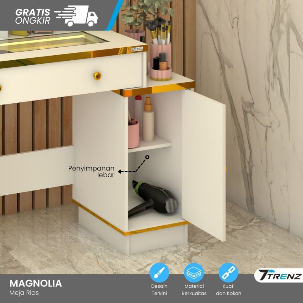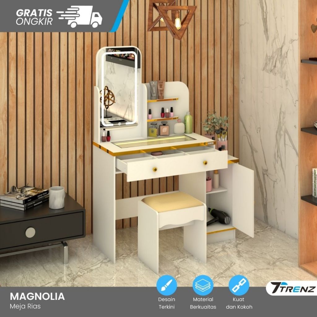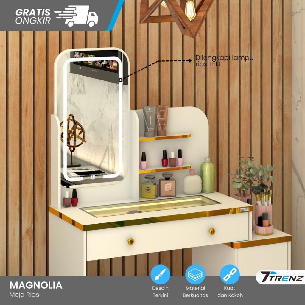 Trenz Furniture - Meja Rias Minimalis LED Meja Rias Aesthetic Multifungsi Include Kursi dan Cermin dan Rak Penyimpanan
