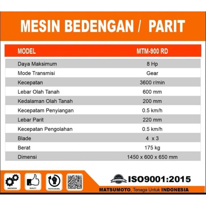 Cultivator Mini Tiller untuk membuat bedengan parit / gulud tebu MATSUMOTO MTM 900 RTH