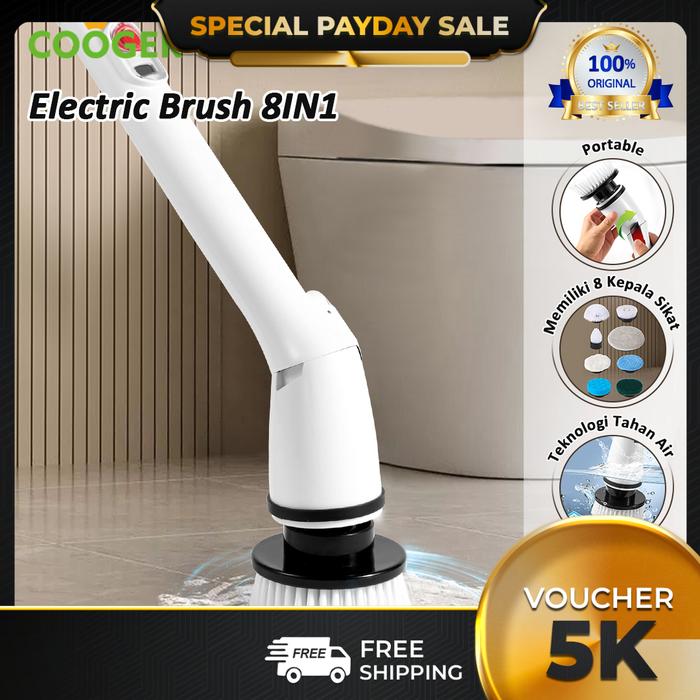 COOGER Sikat Elektrik 8in1 Sikat Pembersih Lantai Multifungsi Handheld Spin Scrubber Cordless