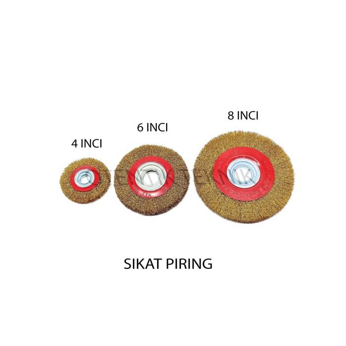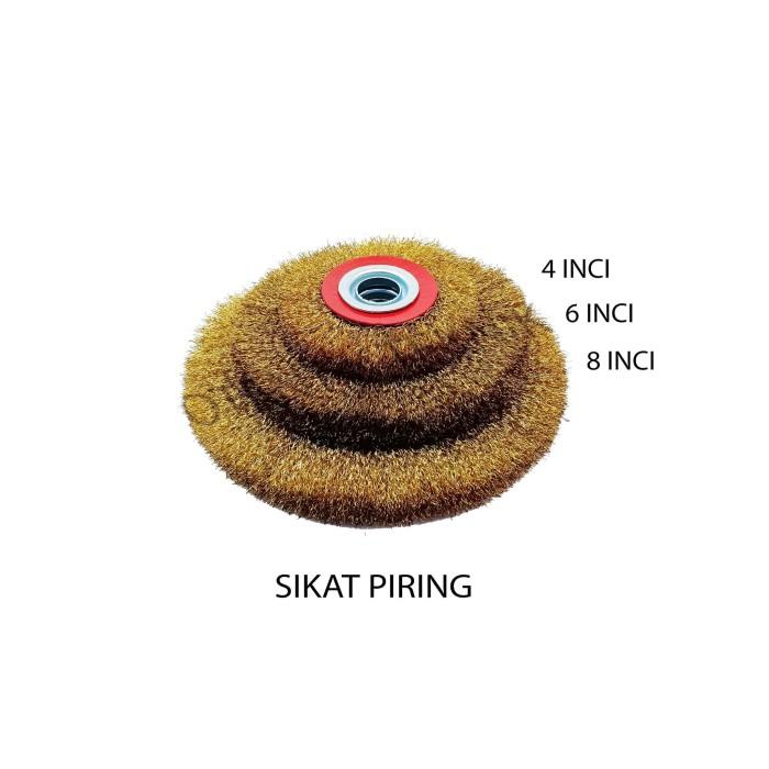 BRASS COATED WHEEL BRUSH 8 INCH - SIKAT BAJA PIRING KUNINGAN 8 INCI - Warna