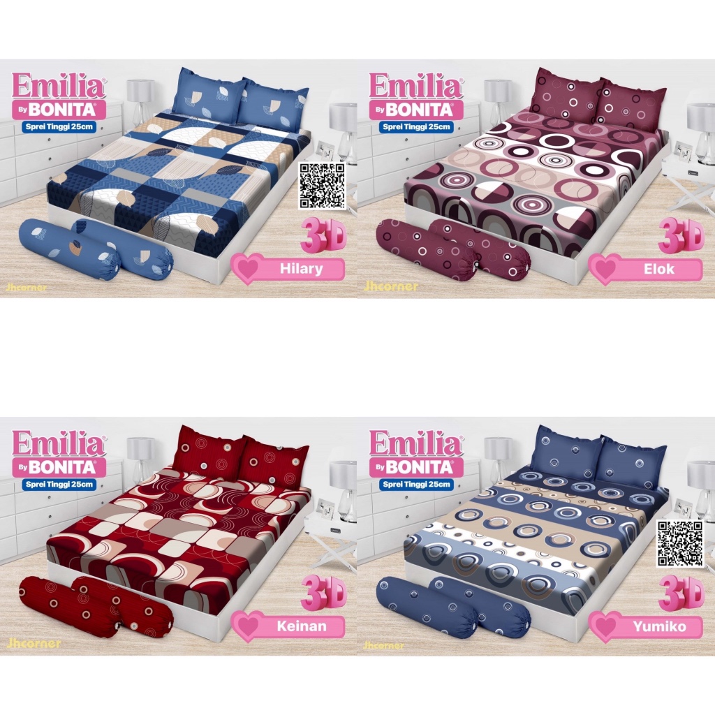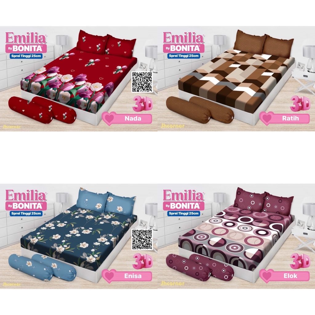 Sprei Bonita Emilia Flat Fitted 3D Print Ukuran 180x200cm T25cm King Size 6 Kaki Motif Terlaris
