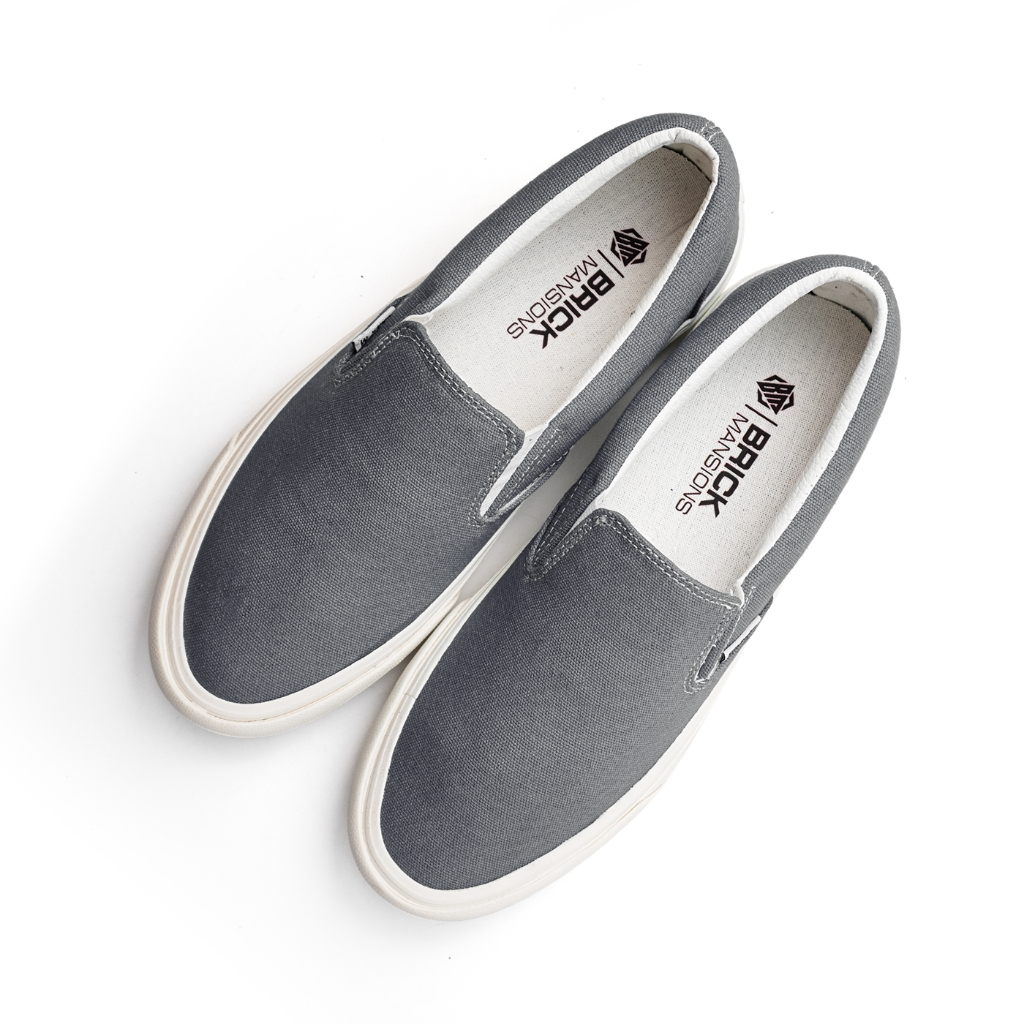 Brick Mansions - Mission Grey White Sepatu Slip On Sneakers Casual Pria Wanita