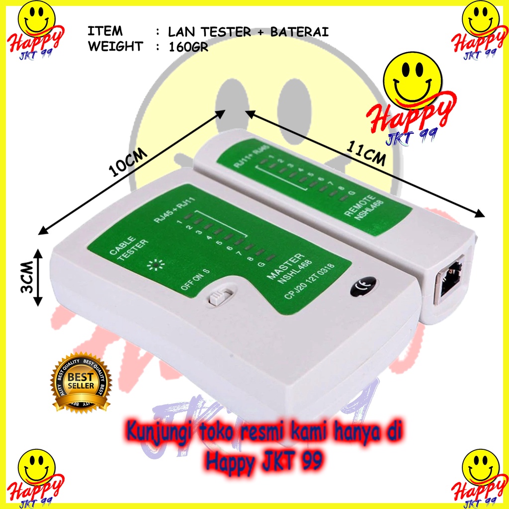 HAPPY JKT 99 LAN TESTER ALAT PENGUJI KABEL LAN RJ45 TELEPON TESTER RJ11 LAN TESTER MASTER NSS-468A LEN ORIGINAL