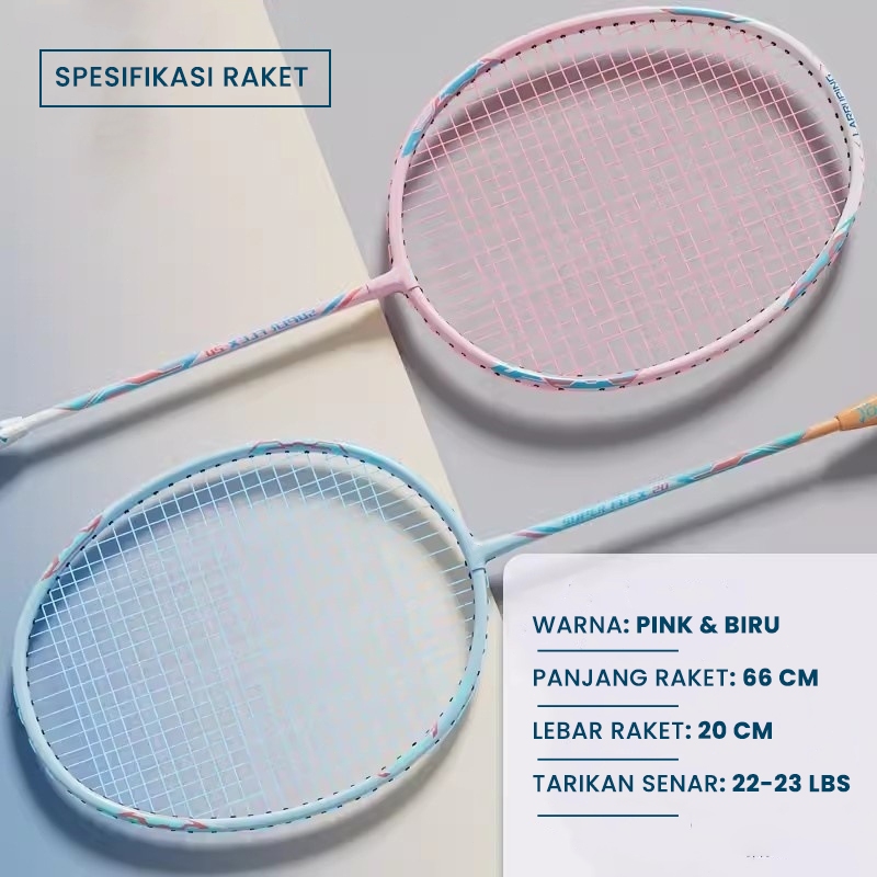 RAKET BADMINTON ISI 2 FREE BAG+KOK BULUTANGKIS / 3 PCS SHUTTLECOCK | Raket Couple Pink Blue | Raket Bulu Tangkis Wanita