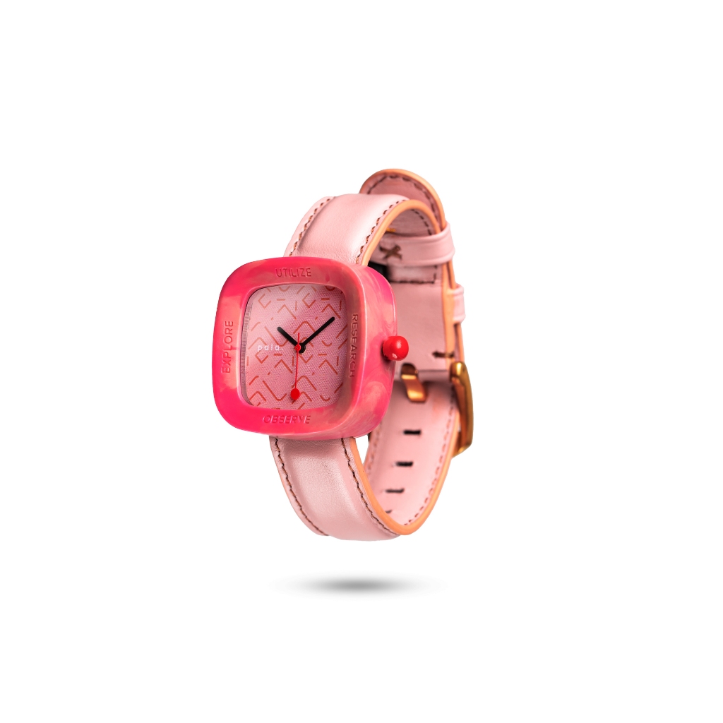 Jam Tangan Kayu Pala Nusantara Mini Merah Muda Kulit Asli Unik Lucu Aesthetic Terbaru Kekinian