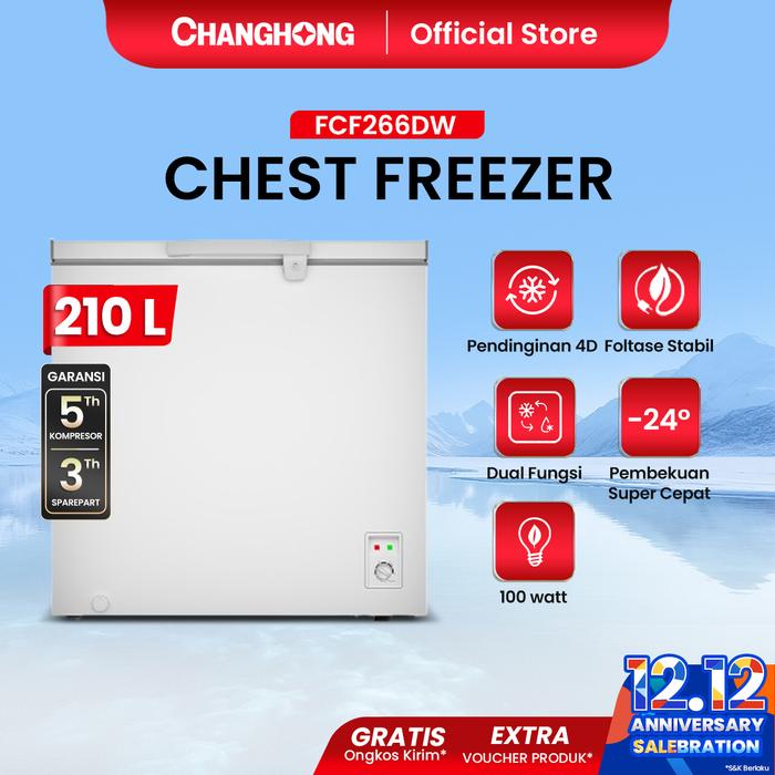 Changhong Chest Freezer FCF266DW Kapasitas 210 Liter (fast freezing) (design look minimalis) (Big Capacity) - WHITE