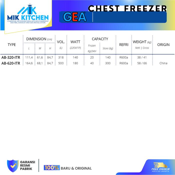 GEA CHEST FREEZER AB-320-ITR / AB-620-ITR INVERTER COMPRESSOR - AB-320-ITR