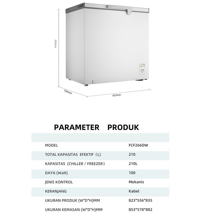 Chest freezer Changhong FCF-266DW chiller 220 Liter FCF266DW Pendingin Frozen Listrik Minuman