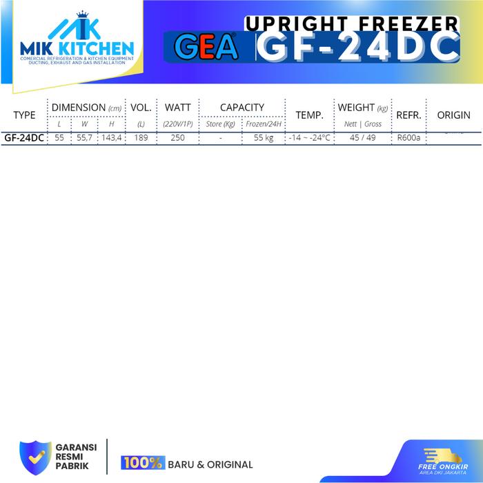 GEA UPRIGHT FREEZER GF-24DC / GF 24DC / GF24DC