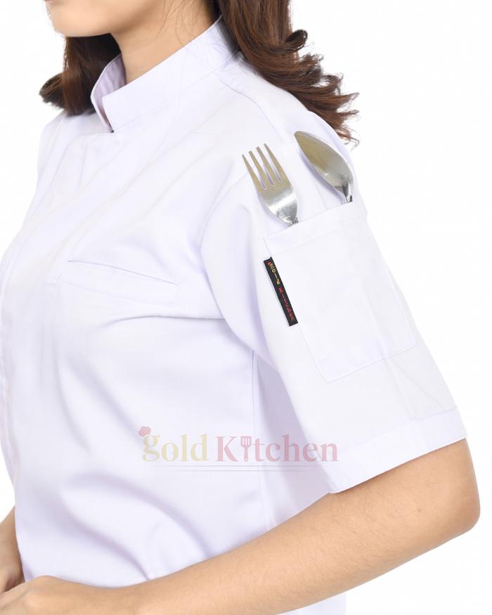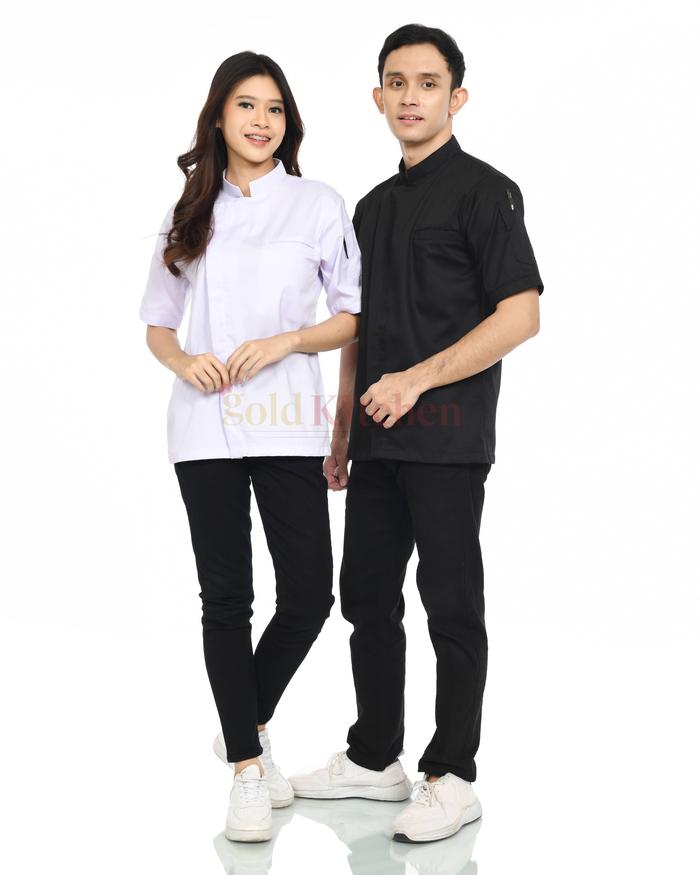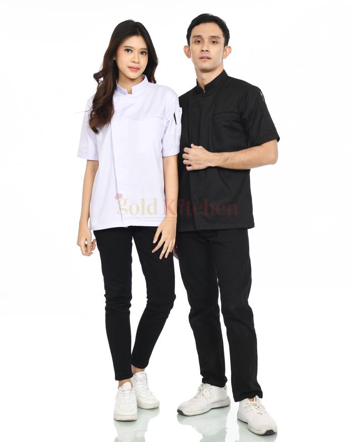 Baju Chef Baju Koki Chef Jacket Pria Wanita Lengan Pendek Model Korean Series B Warna Hitam Putih