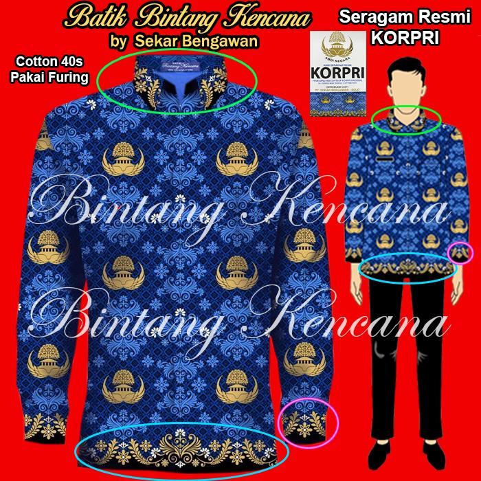 Seragam KORPRI Kemeja Batik Pria BINTANG KENCANA pakai Lapisan Furing - Cotton 40S