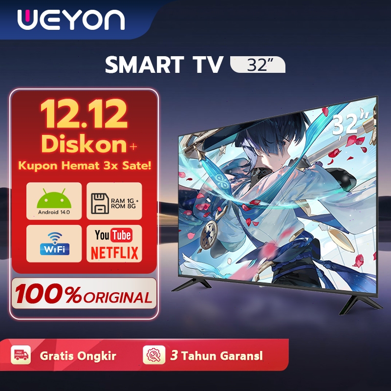 Weyon Android TV 32 Inch Smart TV LED 30/40 inch Digital TV FHD 50/55 inchTelevisi LED Android 14.0-Digital TV-Youtube/N