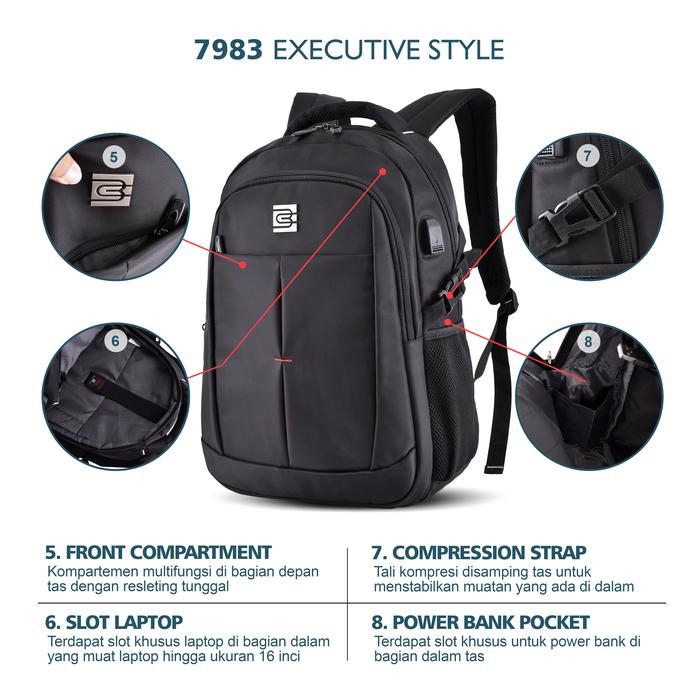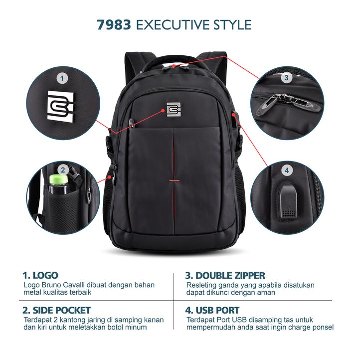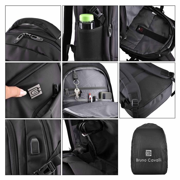 BRUNO CAVALLI FORTE 7983 GRATIS RAIN COVER DAN KABEL USB TAS RANSEL PRIA KANVAS - BLACK