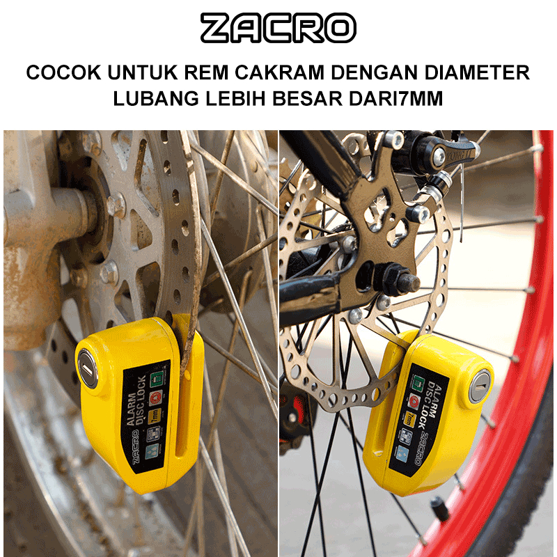 ZACRO Gembok Cakram Alarm Disc Lock Kunci Alarm Gembok Motor Anti Maling