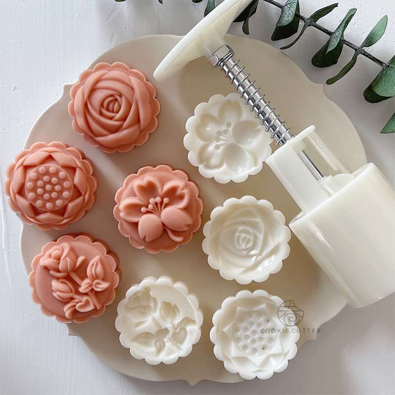 50g Tulip Mawar Cetakan Kue Bulan Cetakan Kue Berbentuk Bunga Cetakan Yang Ditekan Dengan Tangan Festival Pertengahan Musim Gugur