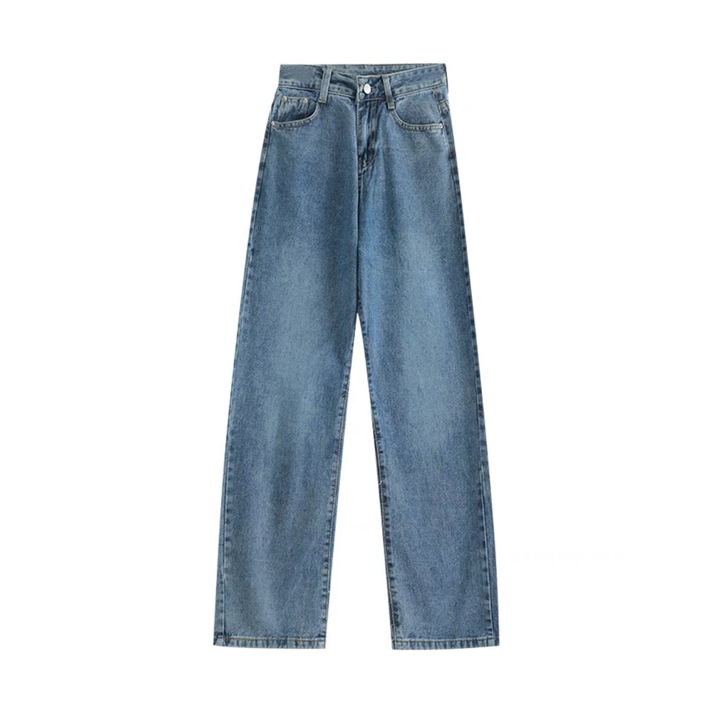 Celana jeans high waist wanita korean style Jeans baggy pants Serbaguna Kasual Biru Retro