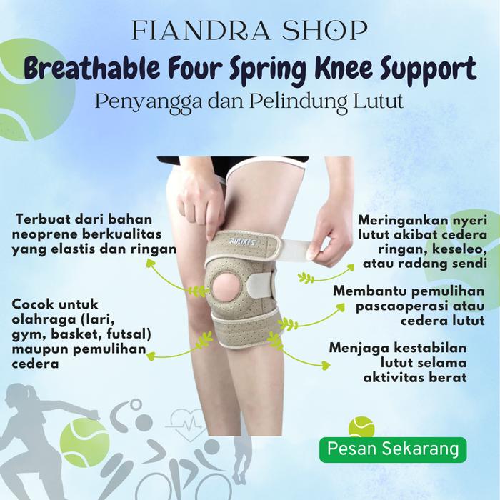 AOLIKES 1PCS Breathable 4 Spring Knee Support Brace Kneepad Original - Hitam Kanan