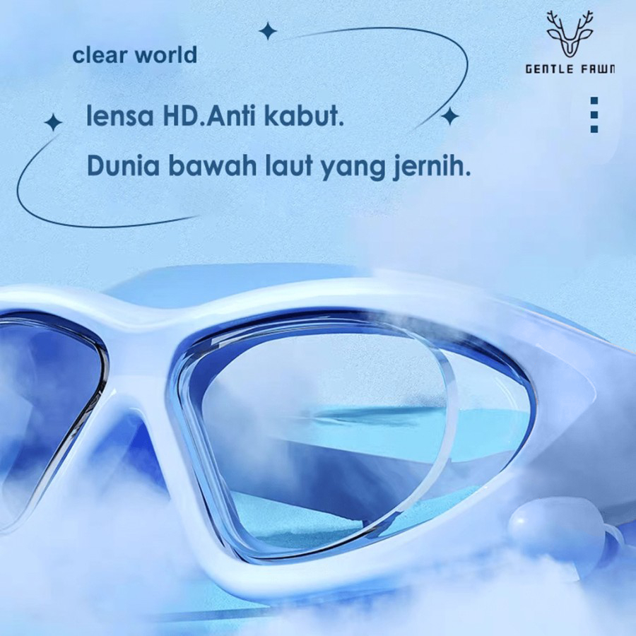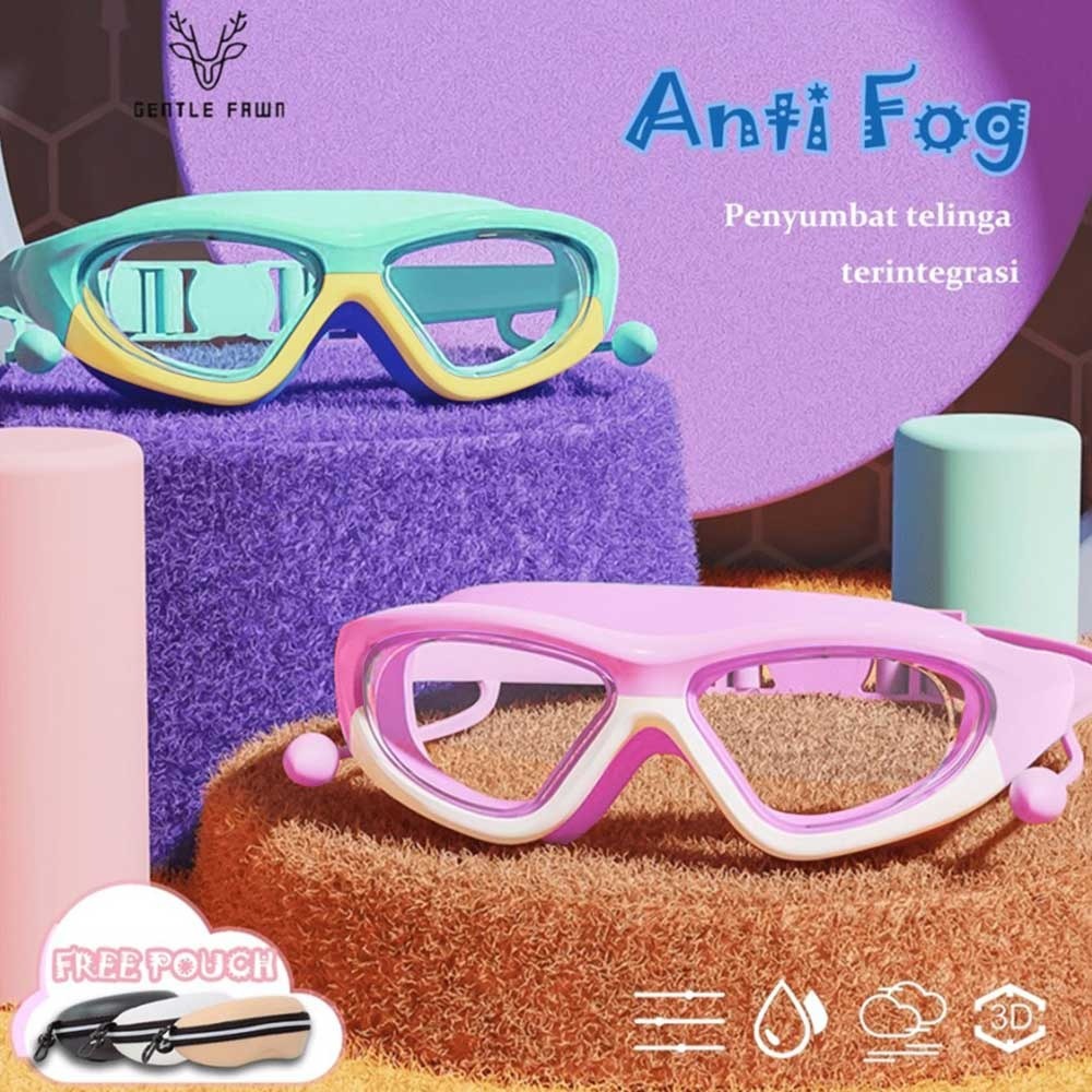 Gentle Fawn Kacamata Renang Anak & Remaja / Swimming Goggles Anti Fog HD Colorfull TR90+Silicone Ear Plug Anak Laki-laki
