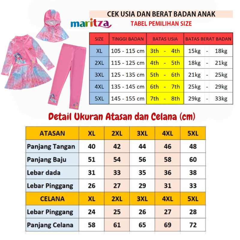 Maritza MA23 Baju Renang Anak Perempuan Hijab Muslimah Jilbab
