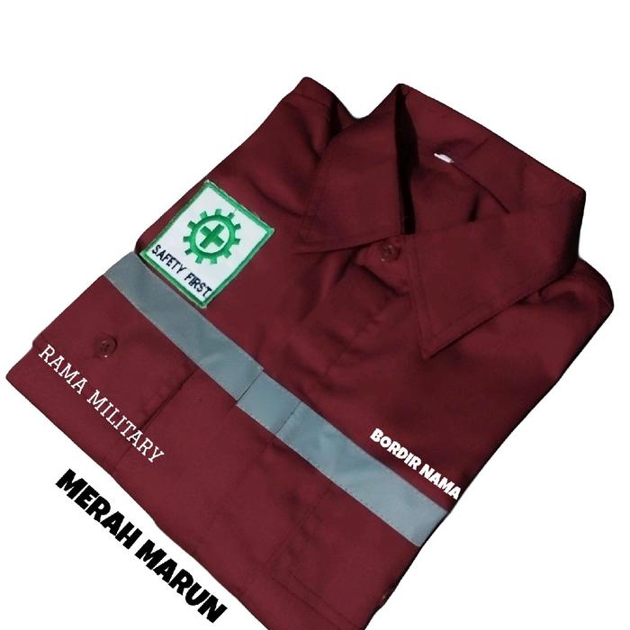 kameja kerja Safety proyek Seragam Wearpack teknik atasan Pria GRATIS NAMA DADA Baju Bordir Hitam