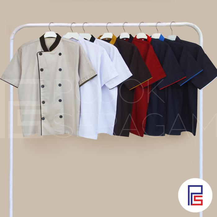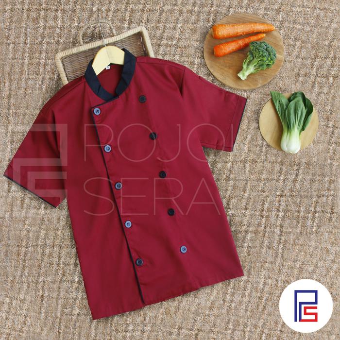 Chef Jacket Baju Koki Baju Cook Seragam Koki Merah Maroon Lengan Pendek