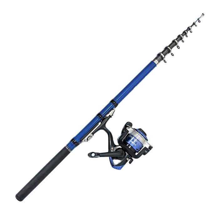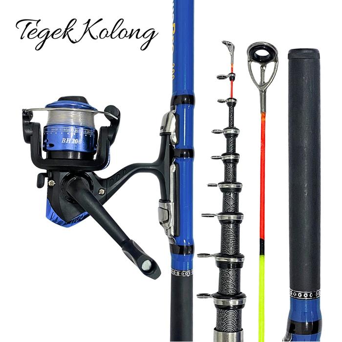 1 Set Paket Joran Tegek Teleskopik High Carbon Portable Action Light Lentur dengan Reel Pancing - Biru 1.80M