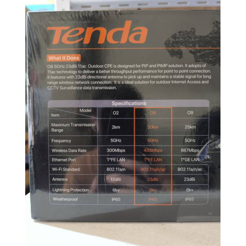 Tenda O8 5GHz 23dBi 11ac Outdoor CPE 20km