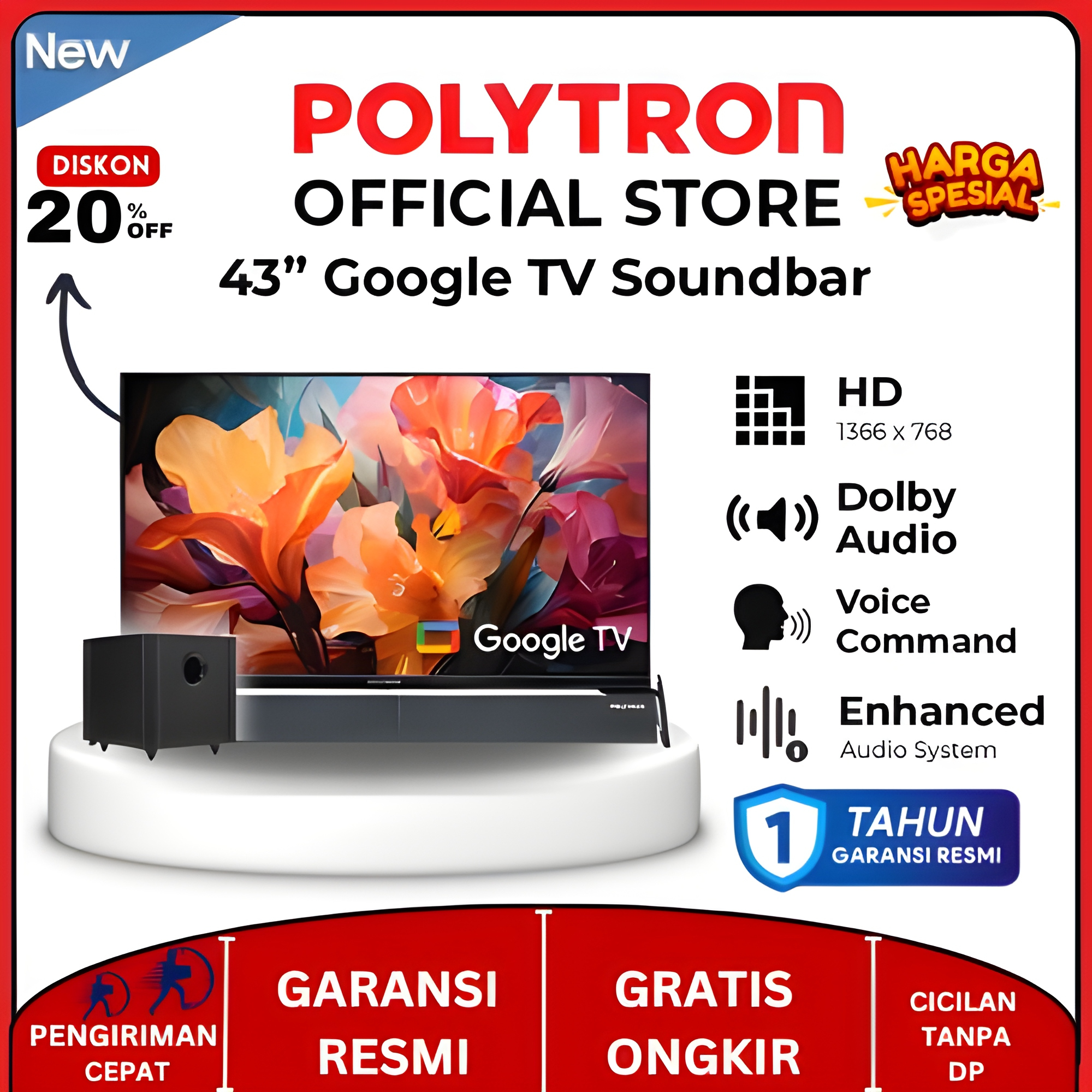 POLYTRON TV SMART 32 INCH HD CINEMAX SET SPEAKER TELEVISI DIGITAL PLD 43BG9058 24 40 43 Inch LED WIFI ANDROID OFFICIAL