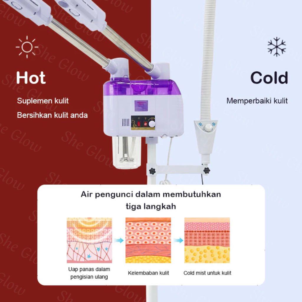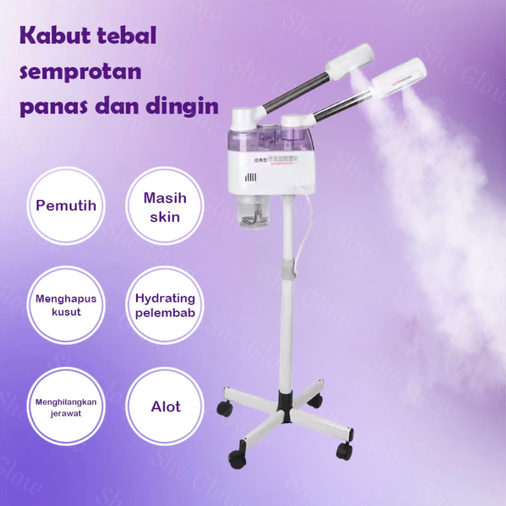 She Glow (GARANSI 1 TAHUN) 2 in 1 Uap Wajah Vapozone Facial Stand Steamer Hot Spray Hot & Cold Super Steam Hidrator Alat