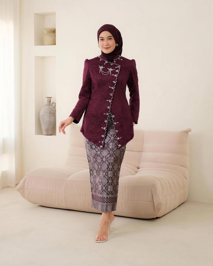 SET KEBAYA BURGUNDY SETELAN WANITA ATASAN DAN ROK KEBAYA BROKAT TERBARU 2025 DRESS KONDANGAN BAJU WISUDA REMAJA DEWASA - BURGUNDI SATU SET, M