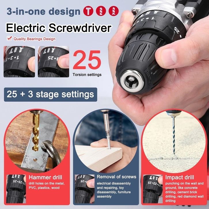 CHIC 766VF Mesin Bor Baterai cas 10mm bor listrik murah bor tangan baterai besi tembok Beton kayu - Cordless Drill bor c