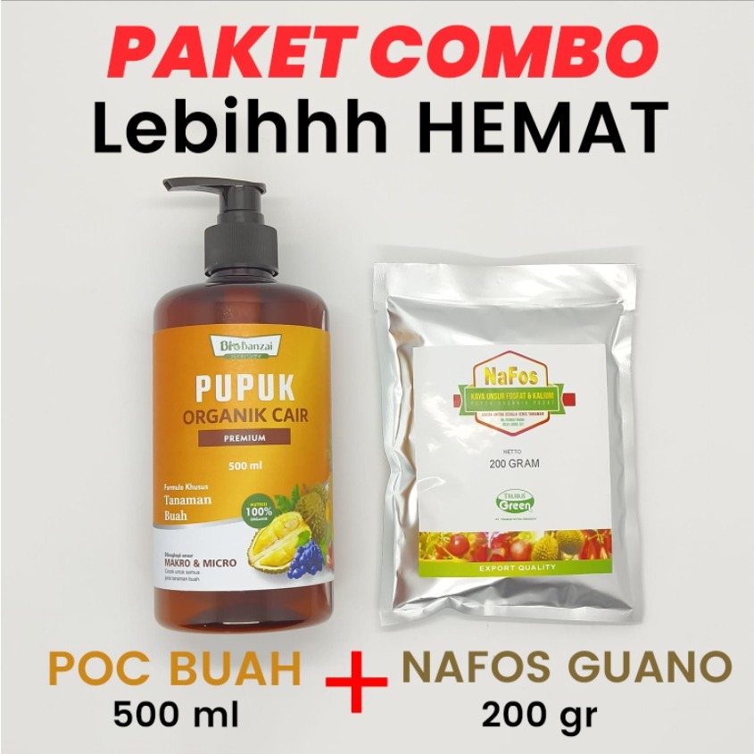 Paket combo pupuk organik cair tanaman buah 500ml Bio banzai dan pupuk nafos guano repack 200gr