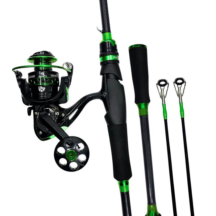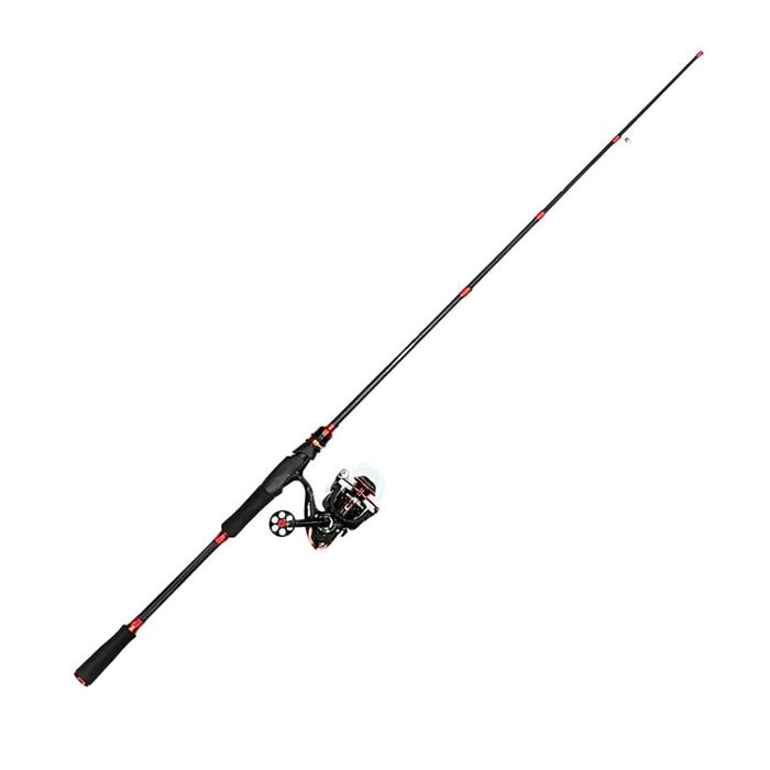 AquaPro Paket Set Joran Pancing Spinning 2 Section dengan Reel Spool Metal + Senar dan Pelampung - Merah 1.65M