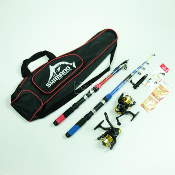 2 Set Pancingan Lengkap Joran Antena Reel 5BB & Bonus Tas Shimano Fiber 15 Meter Siap Pakai Kekuatan 5-7 KG - 150cm