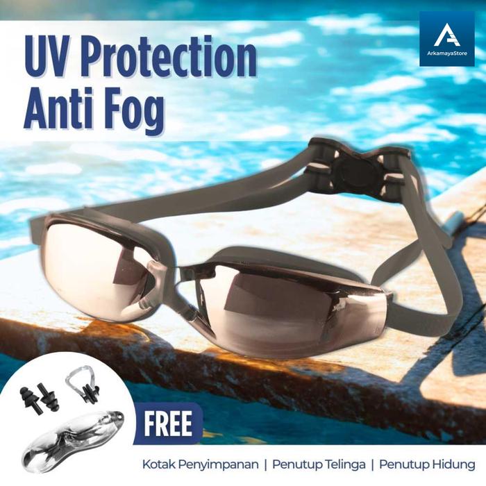 kacamata renang profesional anti fog uv anak dan dewasa - Biru