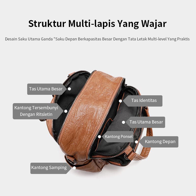 Tas Ransel Wanita Kulit Asli 4 in 1 Ransel Kulit Lembut Serbaguna Baru Yang Simpel Saku Tersembunyi Anti Maling Tas Wani