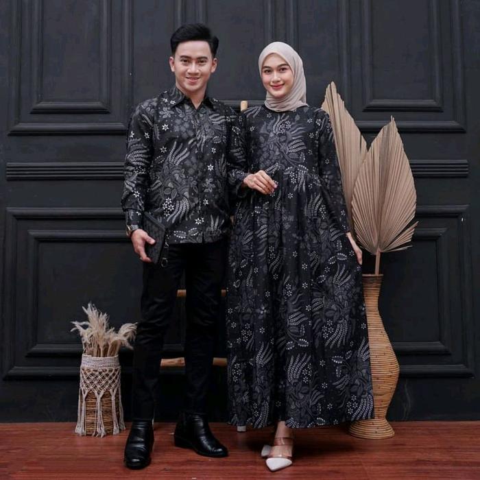 BAJU SET COUPLE KEMEJA PRIA DAN GAMIS BATIK WANITA KEKINIAN LENGAN PANJANG BUSUI RESLETING PASANGAN SARIMBIT DRES KONDANGAN SERAGAM - SET DASI ABU, KEMEJA M + GAMIS STANDAR