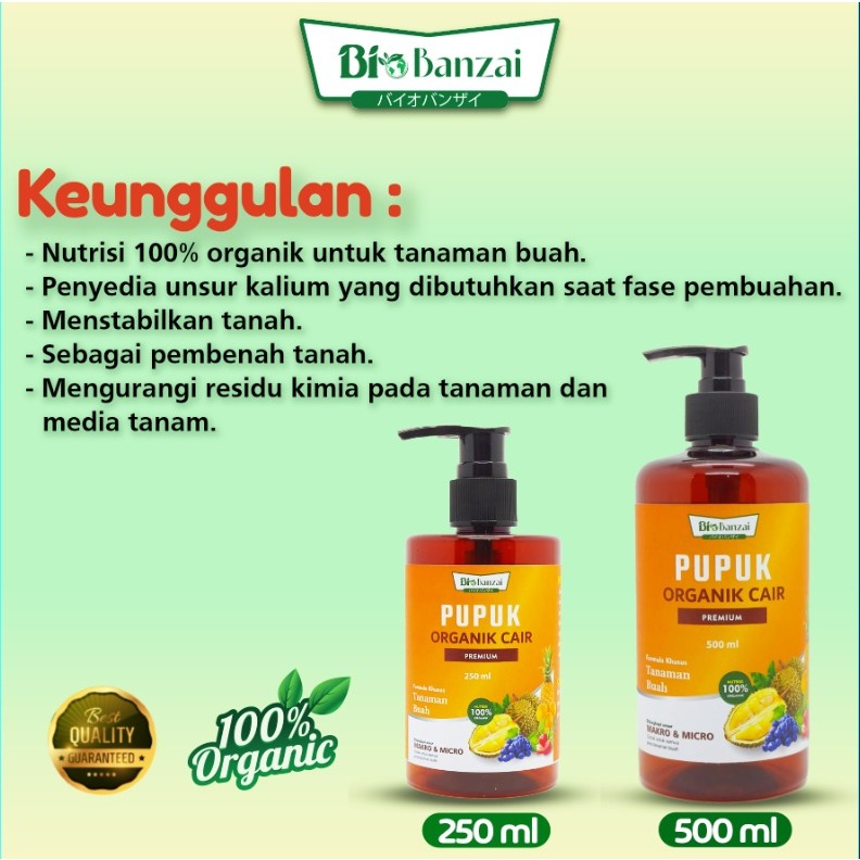 Paket combo poc Bio banzai tanaman buah kemasan 500ml dan pupuk organik fullgro repack 125gr