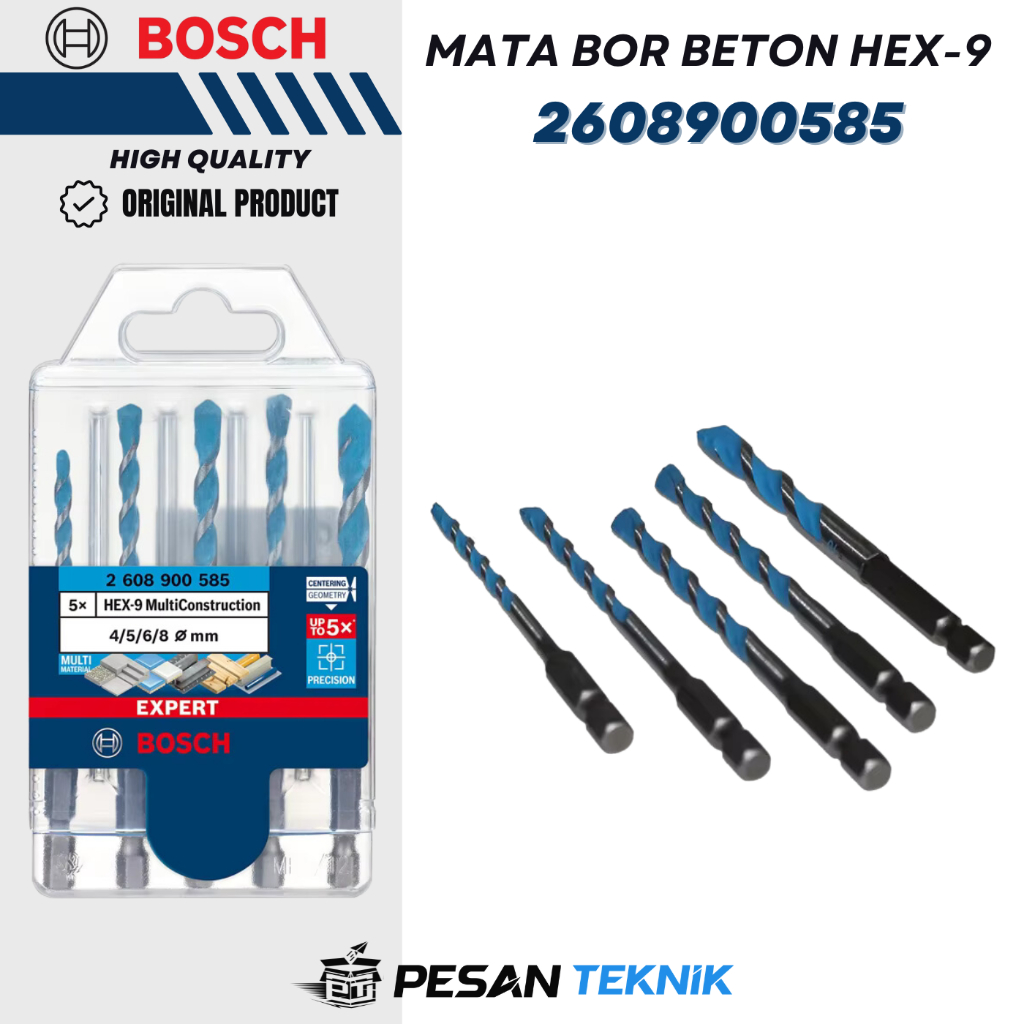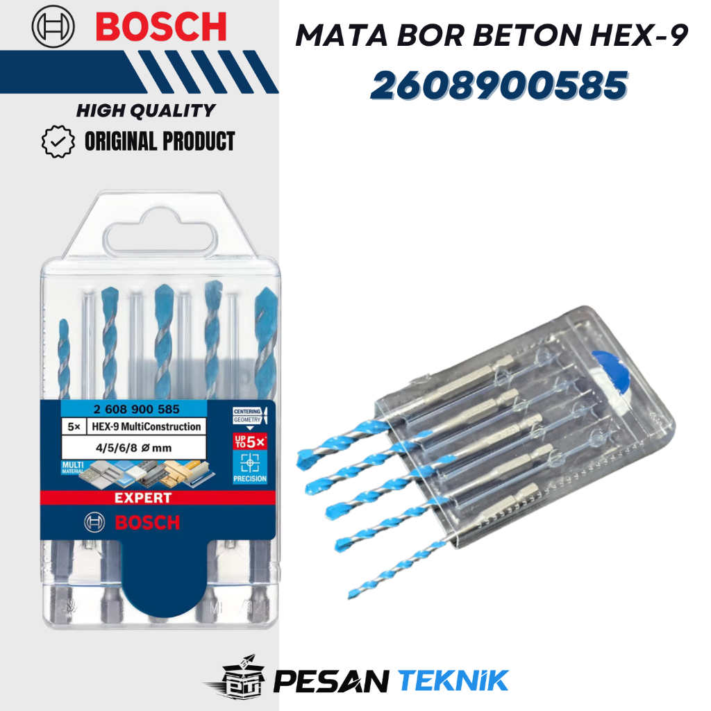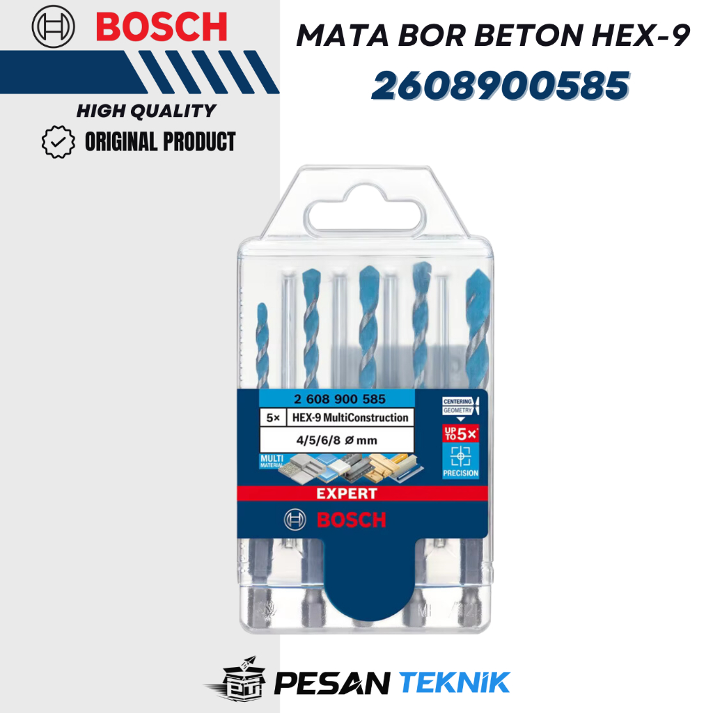 Mata Bor Tembok EXPERT HEX-9 MultiConstruction Drill Bit Set 4/5/6/6/8 mm 5pcs Bosch 2608900585