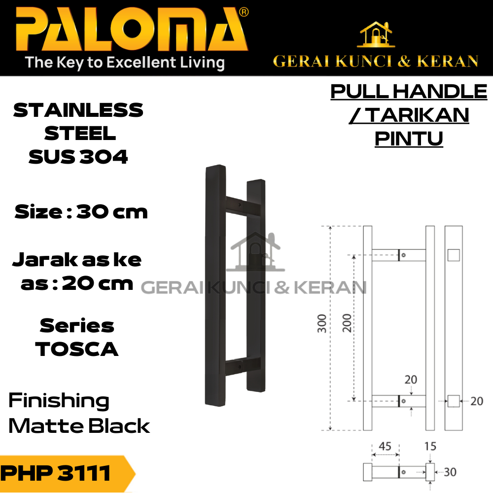PALOMA PHP 3111 PULL HANDLE TARIKAN GAGANG PINTU 300MM HITAM BLACK MATT