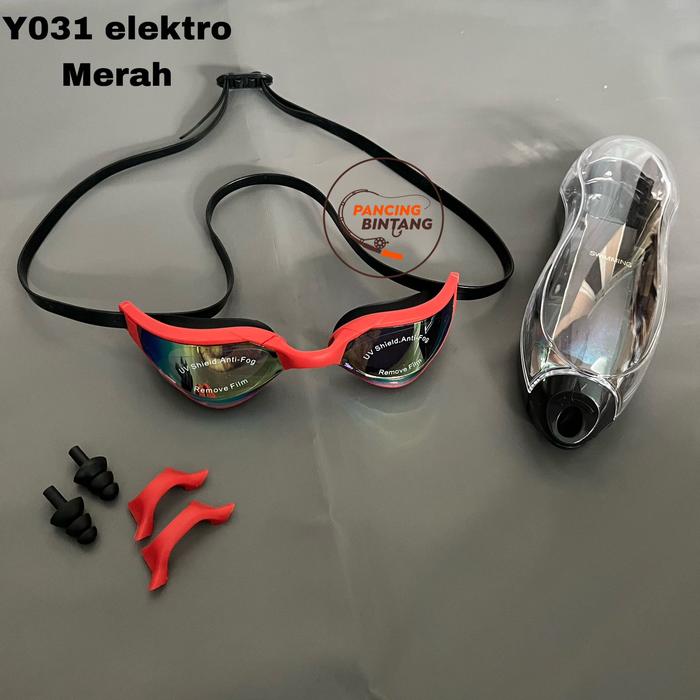 COWFISH Kacamata Renang Remaja Dewasa Y031 Electroplating Anti Fog UV Protection FREE BOX - Y031 electro - Merah