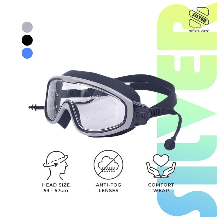 SILVER Kacamata Renang Dewasa Dengan Penutup Telinga earplug Swim Goggles - 280.7731 - Hitam