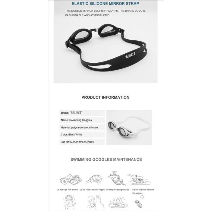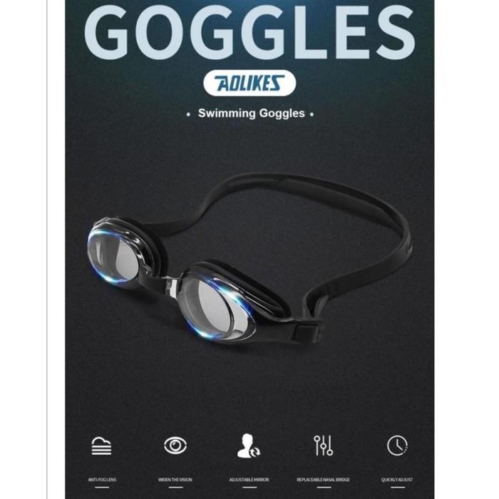 KACAMATA RENANG AOLIKES SWIMMING GOOGLES ANTI FOG KACA MATA DEWASA ORI - Hitam