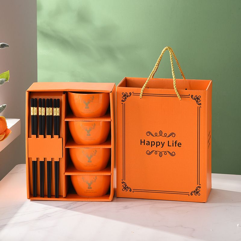 HOUSEWAREBRAND - MANGKOK KERAMIK MOTIF MEWAH JEPANG HAPPY LIFE ORANGE[FREE KARTU UCAPAN DAN SUMPIT]